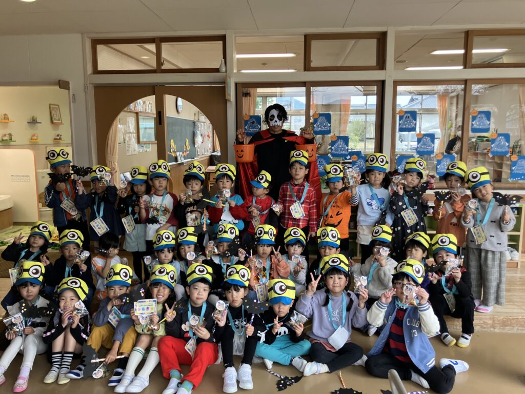 シールが全て集まり「トリックオアトリート」の合言葉を言うと、ドラキュラからお菓子のプレゼントが!