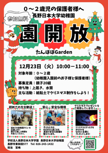 12月23日(火)にたんぽぽGARDEN(園開放)を行います。