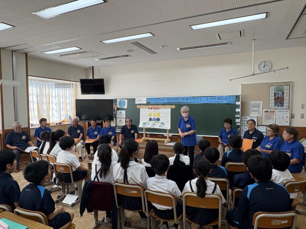 お風呂の浴槽に水をためていたおかげで下水があがってこなかった、床上60㎝の浸水で上がった畳が家の中でぷかぷか浮いていた、などのお話を聞き、事前学習で調べてきた災害をより現実として実感しました。また、「のどが渇いたのに蛇口をひねっても水が出ない、汗をかいたのにシャワーの水が出ないなど、必要な時に水が使えない生活が考えられますか?」との問いに、災害が起こるとはどういうことなのかを改めて考える機会となりました。