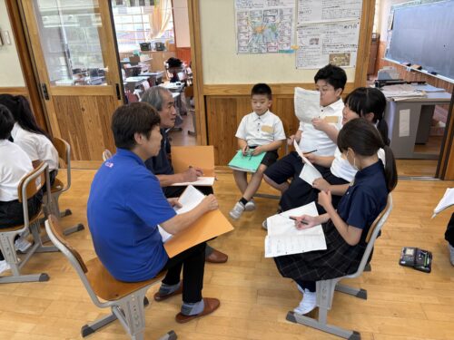 お風呂の浴槽に水をためていたおかげで下水があがってこなかった、床上60㎝の浸水で上がった畳が家の中でぷかぷか浮いていた、などのお話を聞き、事前学習で調べてきた災害をより現実として実感しました。また、「のどが渇いたのに蛇口をひねっても水が出ない、汗をかいたのにシャワーの水が出ないなど、必要な時に水が使えない生活が考えられますか?」との問いに、災害が起こるとはどういうことなのかを改めて考える機会となりました。