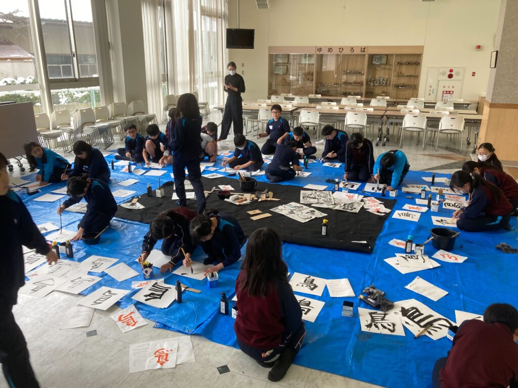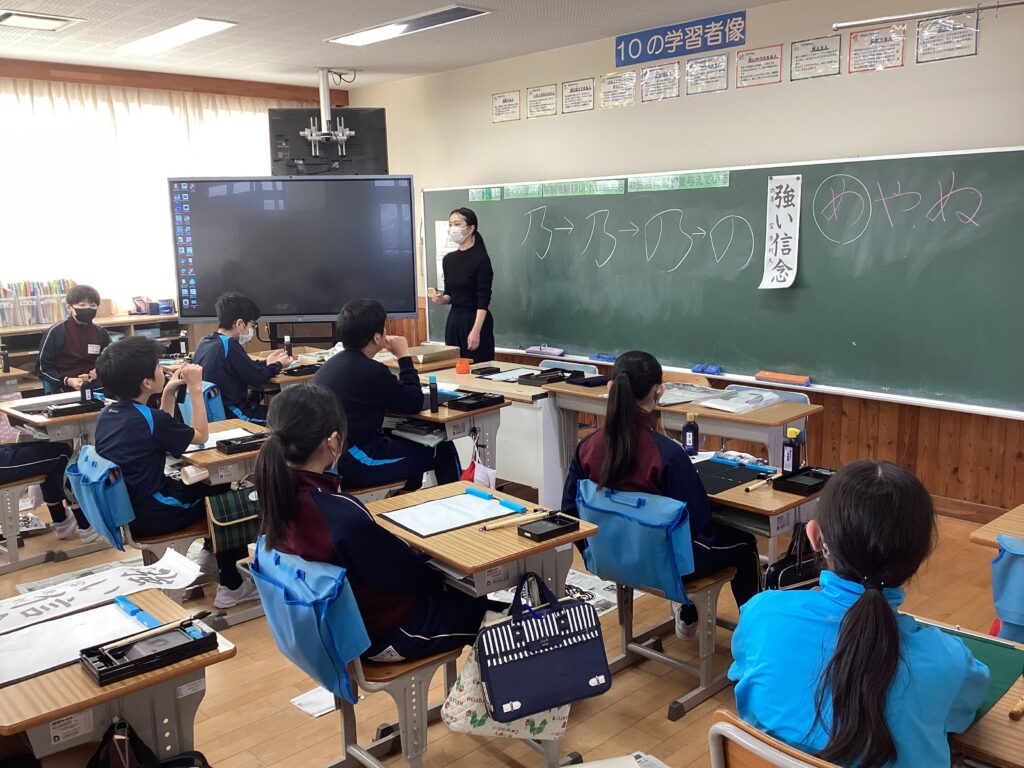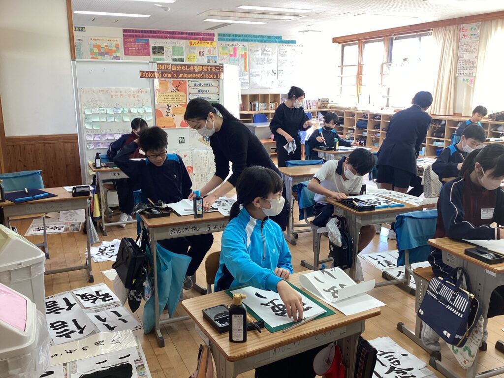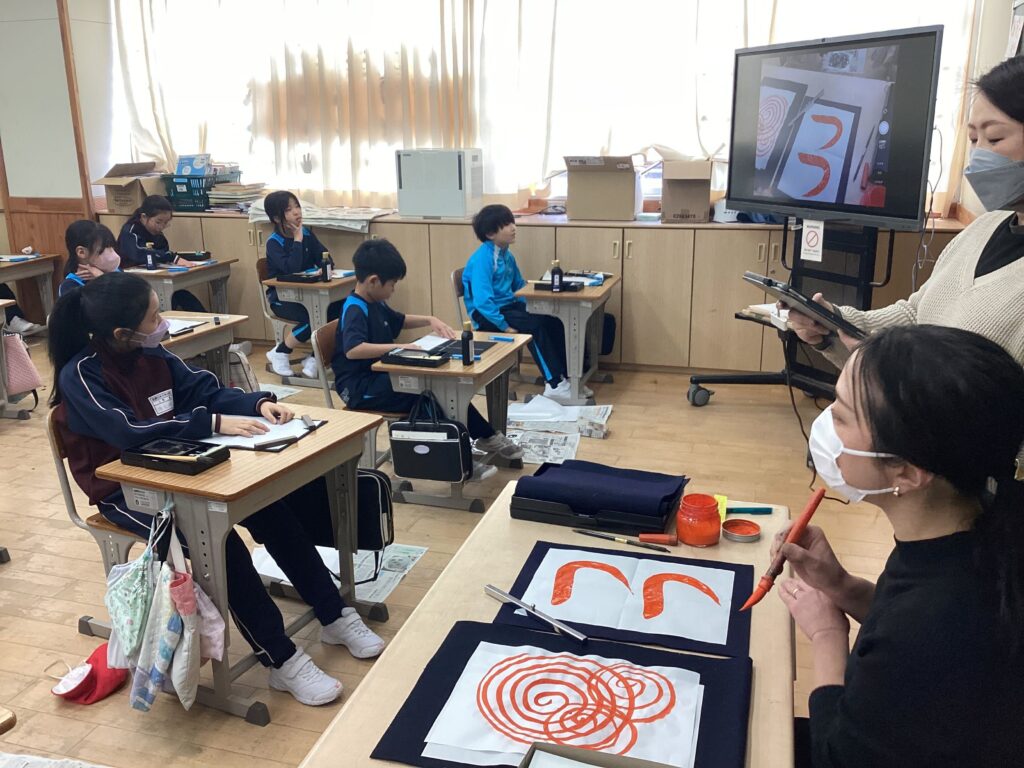 12月には4年生と6年生、1月には3年生と5年生を対象に各2時間、学年の進度や希望に合わせた講座を実施。書き初めの課題を書く際のポイントだけでなく、漢字の成り立ちや筆の動かし方など、島田先生ならではの切り口や視点で書道の魅力をたくさん伝えていただきました!