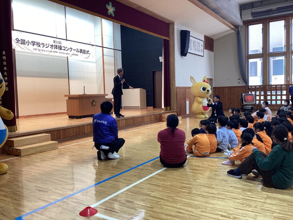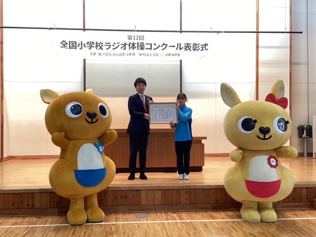 この活動が認められ、本校は総務大臣賞、文部科学大臣賞に次ぐ「かんぽ生命特別賞」に選ばれました!(第12回全国ラジオ体操コンクール結果発表のページはコチラ)