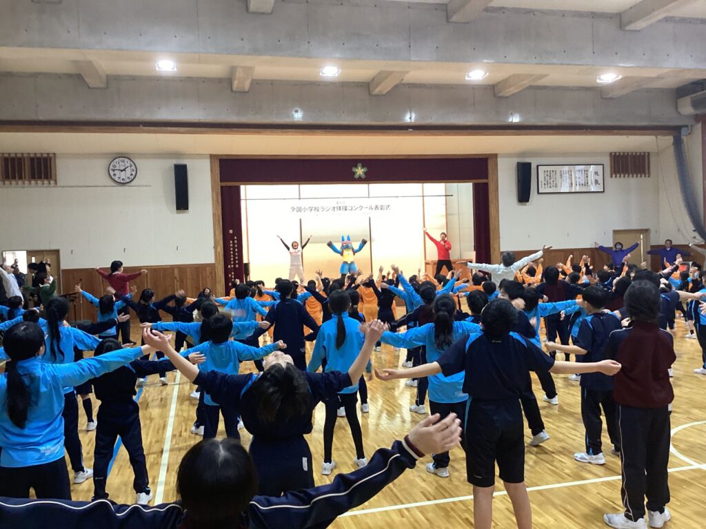 この活動に刺激を受けた児童がラジオ体操に興味を持ち始めて応募したのが、かんぽ生命主催による、第12回全国小学校ラジオ体操コンクールの取組部門でした。児童会の代表委員、体育委員のメンバーを中心に皆でアイデアを出し合う中で、「ラジオ体操を通して校種を越えた楽しい交流をしたい!」という想いから活動を開始。児童が主体となって、幼稚園や中学・高校生を巻き込んだラジオ体操イベントを実施しました。(中高との交流イベントの様子はコチラ)
