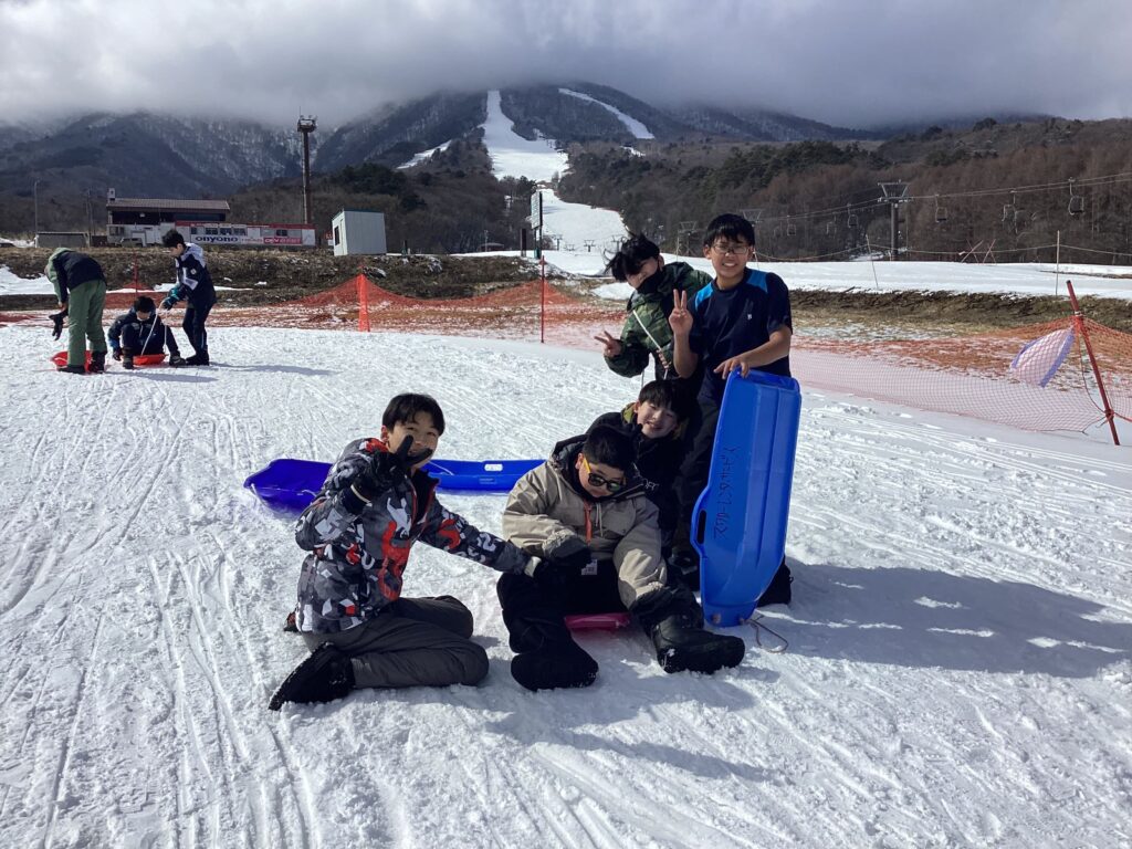 午後は、スキー教室でもお世話になっているいいづなスキーリゾートへ向かいました。台湾は沖縄本島とほぼ同じ緯度に位置しており、高地を除いて雪が降ることはほとんどありません。中には生まれて初めて雪を見たという児童もいたようで、雪の上を走り回ったり、何枚も写真を撮ったりと大興奮の様子でした。短い時間ではありましたが、そり遊びや雪合戦など、大自然の中で両校の子どもたちが夢中になって楽しそうに遊ぶ姿があちこちで見られました。
