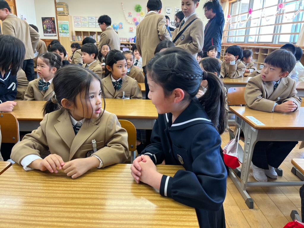またホームの時間以外にも、登校時間にはゲートで1年生を出迎えてサポート。授業の合間の休み時間にはたくさんの児童が1年生教室に来て一緒に遊んでくれたり、学校を案内してくれたり!