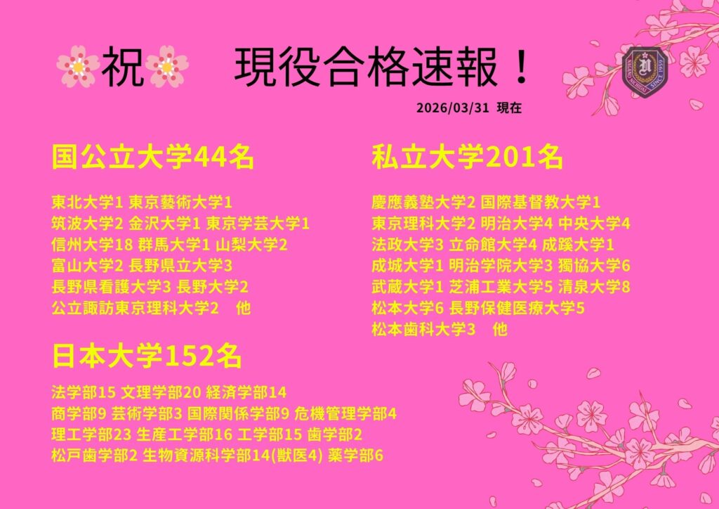 現役合格速報(3.31現在)